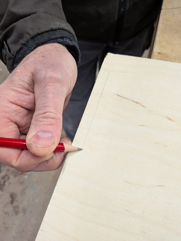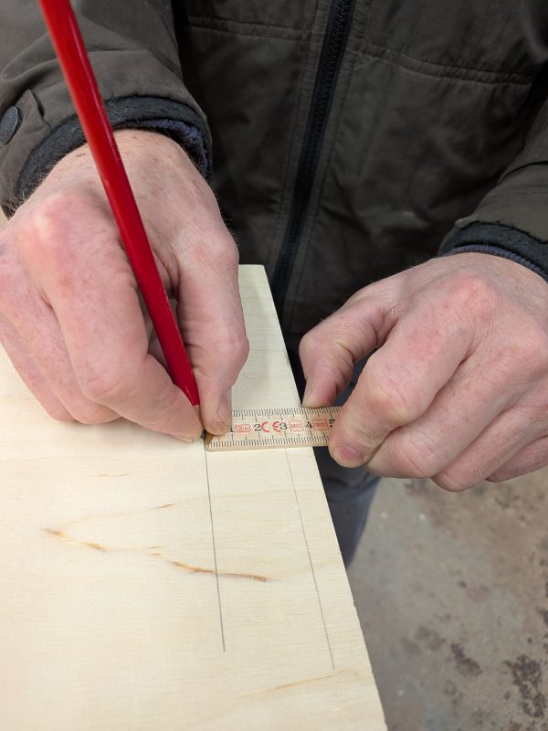 Für viele Anwendungen brauchst du keine speziellen Tools zum Anzeichnen. Trau dich ruhig einmal, es mit altbewährten Techniken zu versuchen. Wenn du ein bisschen übst, funktionieren diese wunderbar und machen Anreißlineal, Kombiwinkel und Co. überflüssig. Hier mal ein Beispiel: